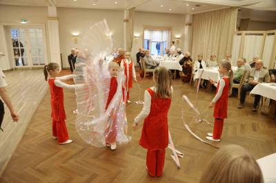Ein besonderes Highlight der Veranstaltung war die Aufführung verschiedener Tänze durch die talentierten Kinder Tanzfabrik Studio Claudia aus Delbrück. Die kleinen Tänzerinnen und Tänzer begeisterten das Publikum mit ihren Darbietungen und sorgten für eine fröhliche Stimmung. Inmitten der festlichen Feierlichkeiten trugen die Kinder Mats Meier und Moritz Rübbelke die Weihnachtsgeschichte vor.